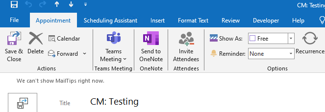 I have used VIEW SETTINGS: CONDITIONAL FORMATTING so that appointments that contain CM (my wife's initials) in the subject are formatted as gray. But I would like Outlook to conditionally also look for CM in the subject and if found, set the SHOW AS to FREE and the REMINDER to NONE.