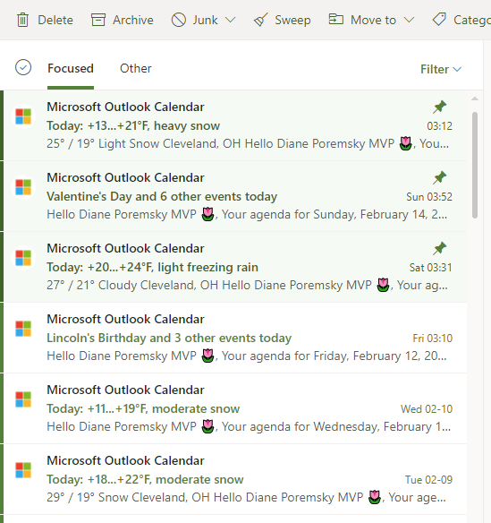 For the past ten days, every new email has been pinned, instead of going into my Inbox.
